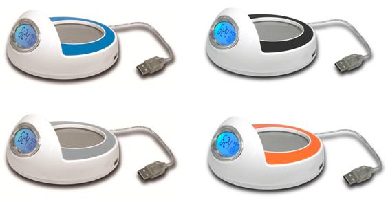 --4-Port USB Hub --Manitain constant temperature >=50.C --USB supply power --Date/Time/Weel display --Temperature of cup warmer display --Power consumption: <3.0W; Working voltage: DC5V --Keep milk, coffee. tea hot etc. --Suggest use stainless steel flat-bottomed.